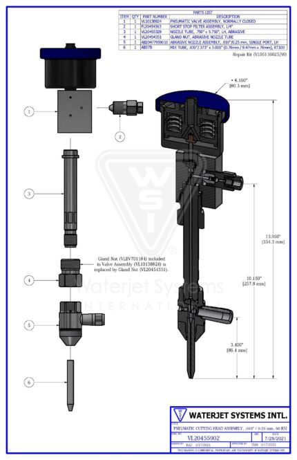 Pneumatic Cutting Head Assembly, .010″ / 0.25mm, 60 KSI