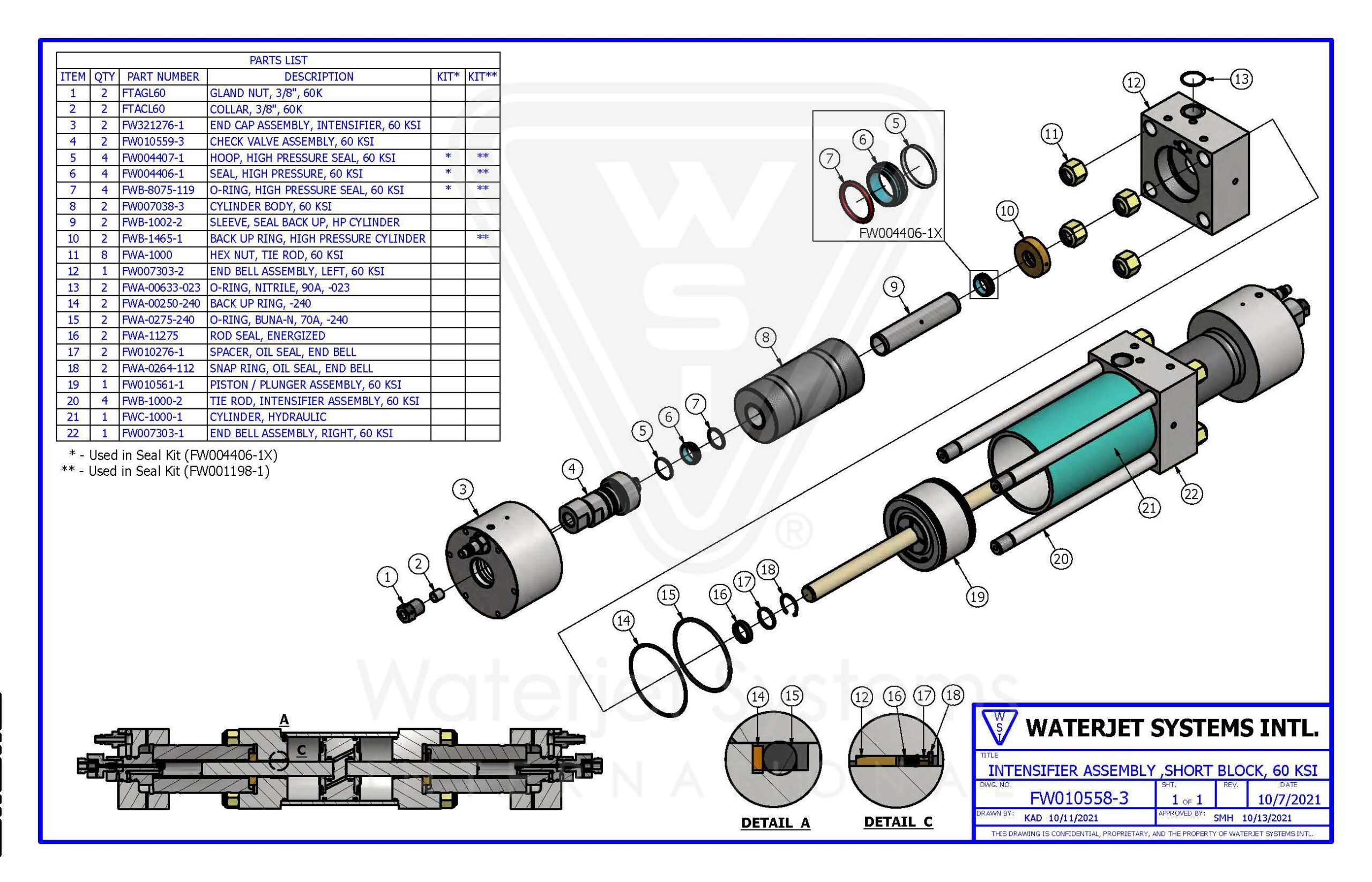 Intensifier Assembly, Short Block, 60 KSI