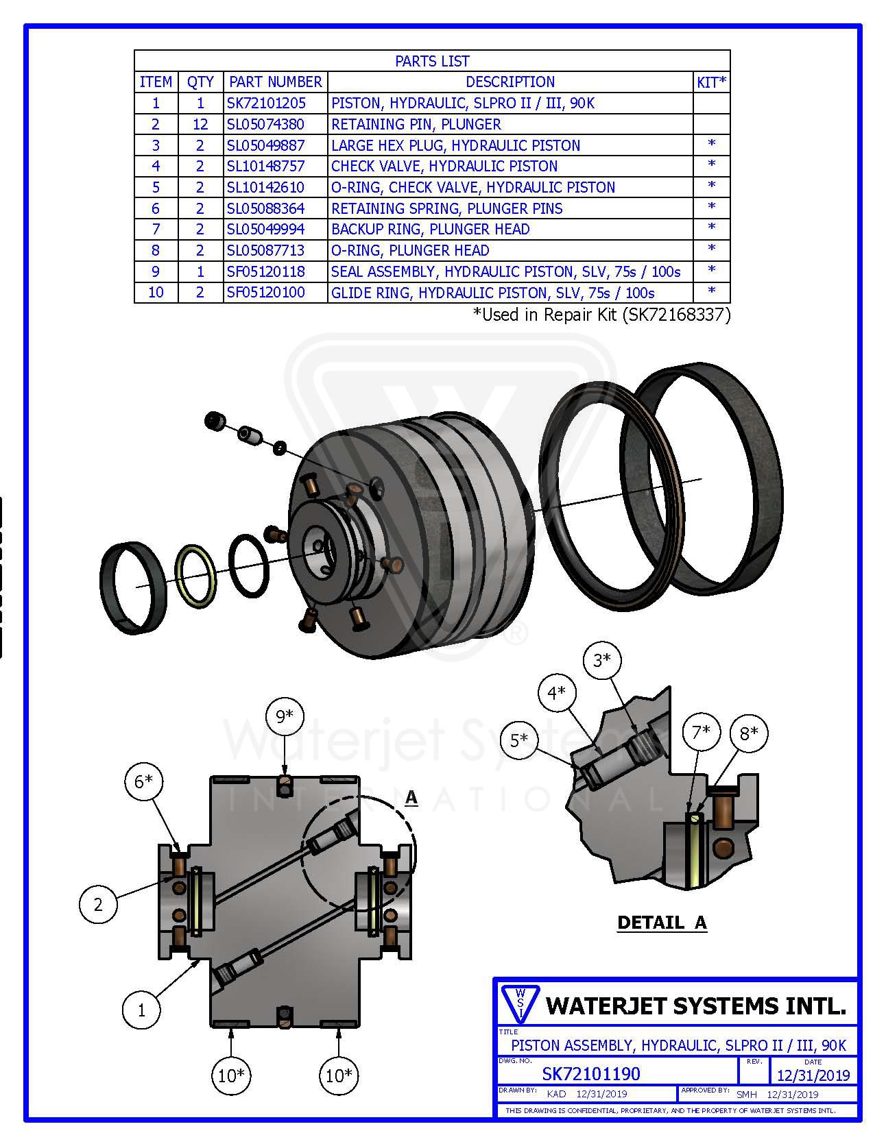 Piston Assembly, Hydraulic, SLPRO II / III, 90K