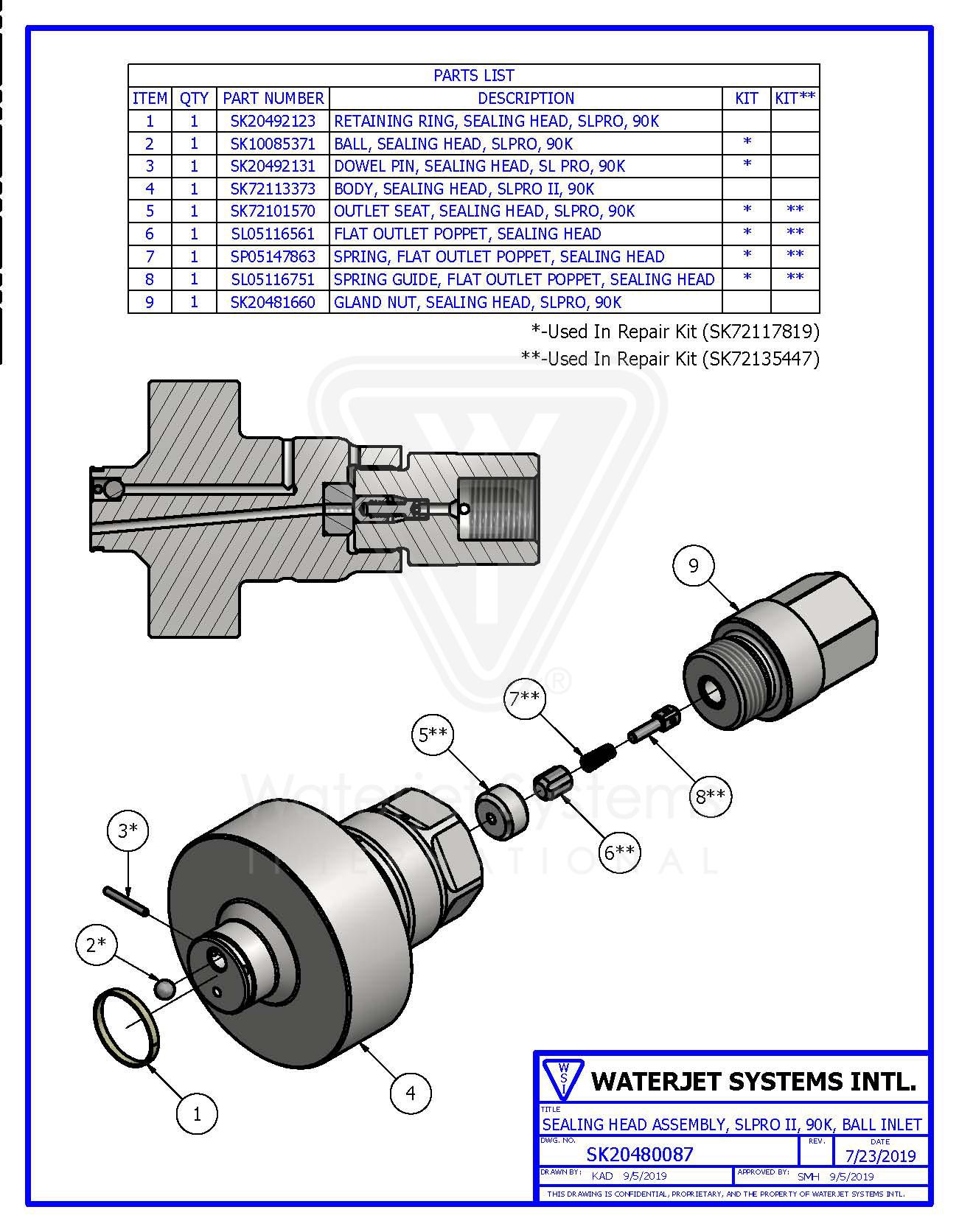 Repair Kit, Sealing Head Assembly, SLPRO I, 90K, Ball Inlet / Flat Outlet