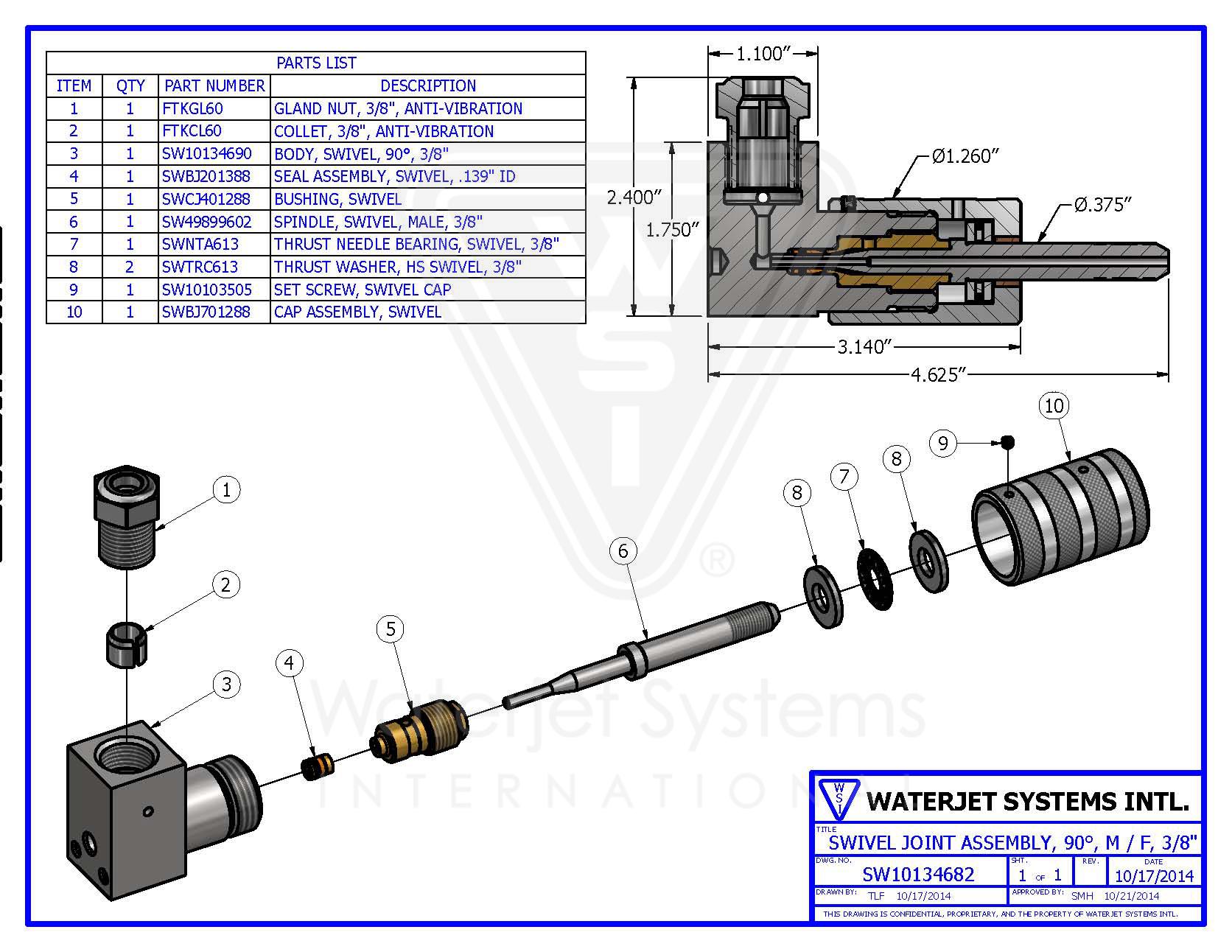Swivel Joint Assembly, 90°, M / F, 3/8″