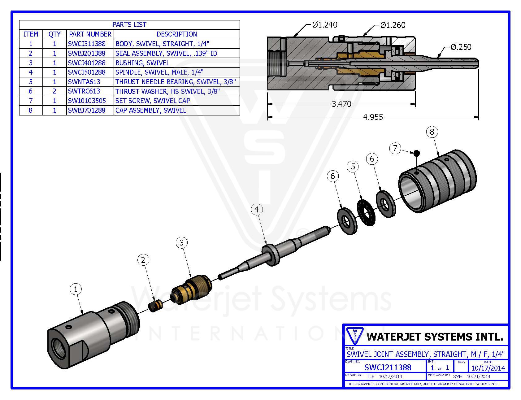 Swivel Joint Assembly, Straight, M / F, 1/4′